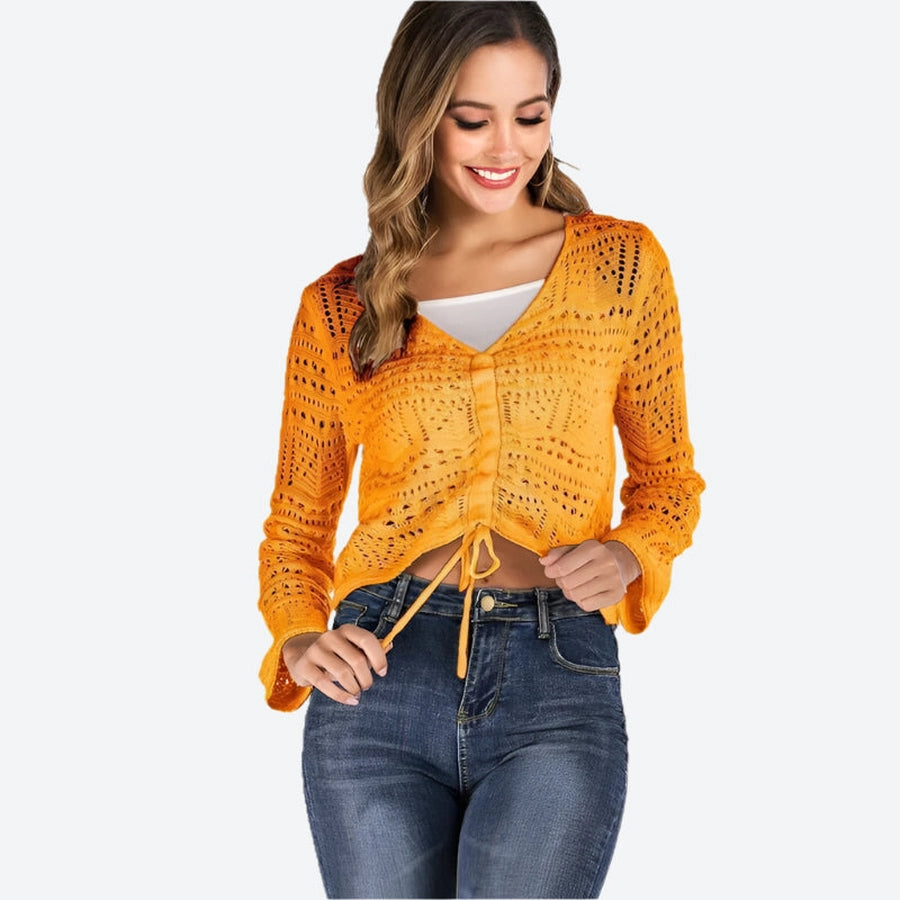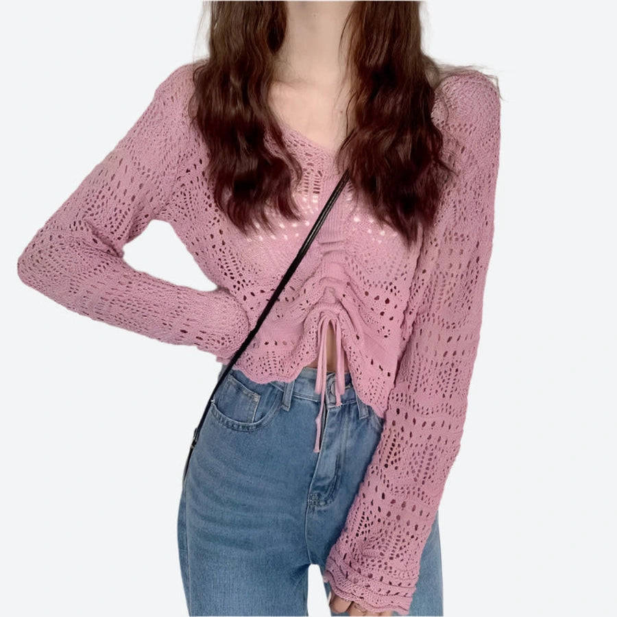 • Design/Feature: Intricate crochet pattern with ruched drawstring detail