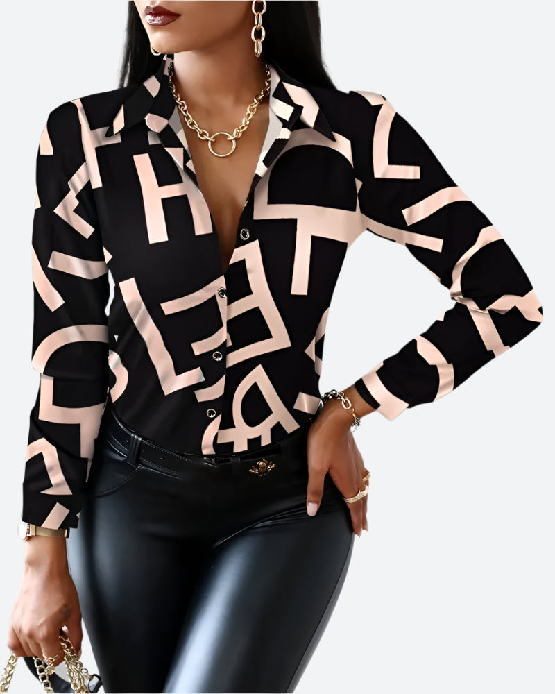 • Design/Feature: Bold Graphic Print with a Classic Collar