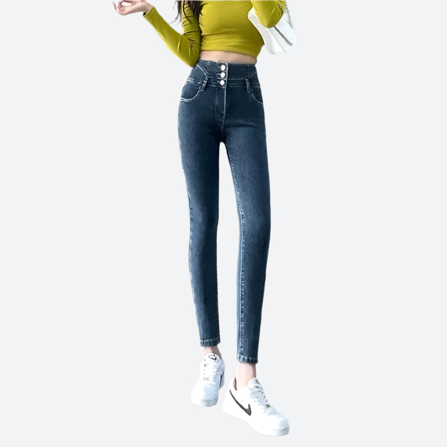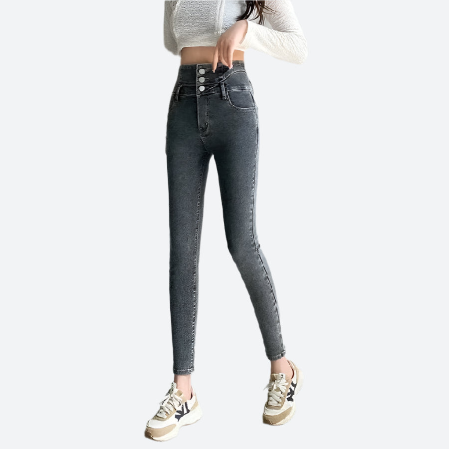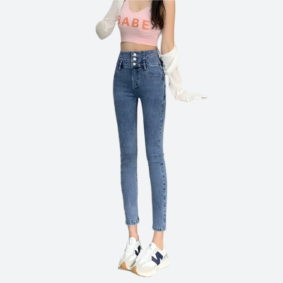 High-Waist Slim Fit Buttoned Jeans