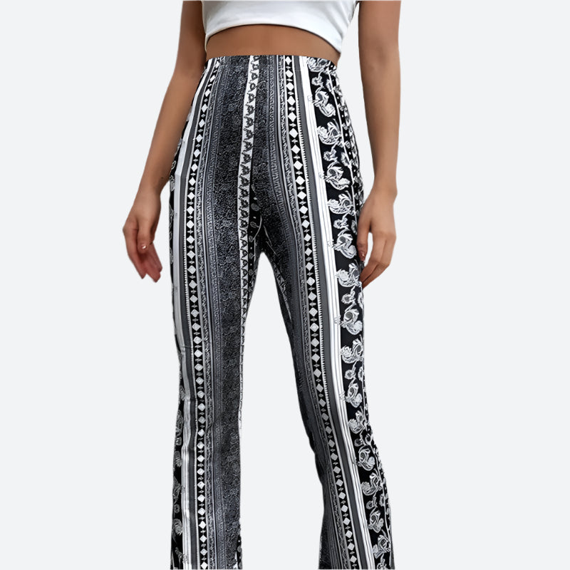 High-Waisted Boho Flared Leg Pants