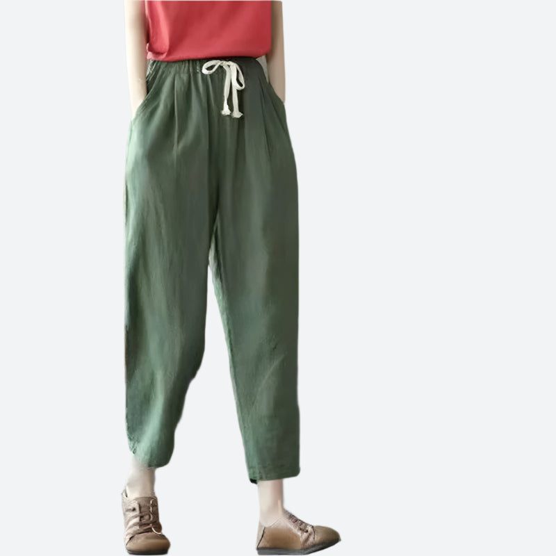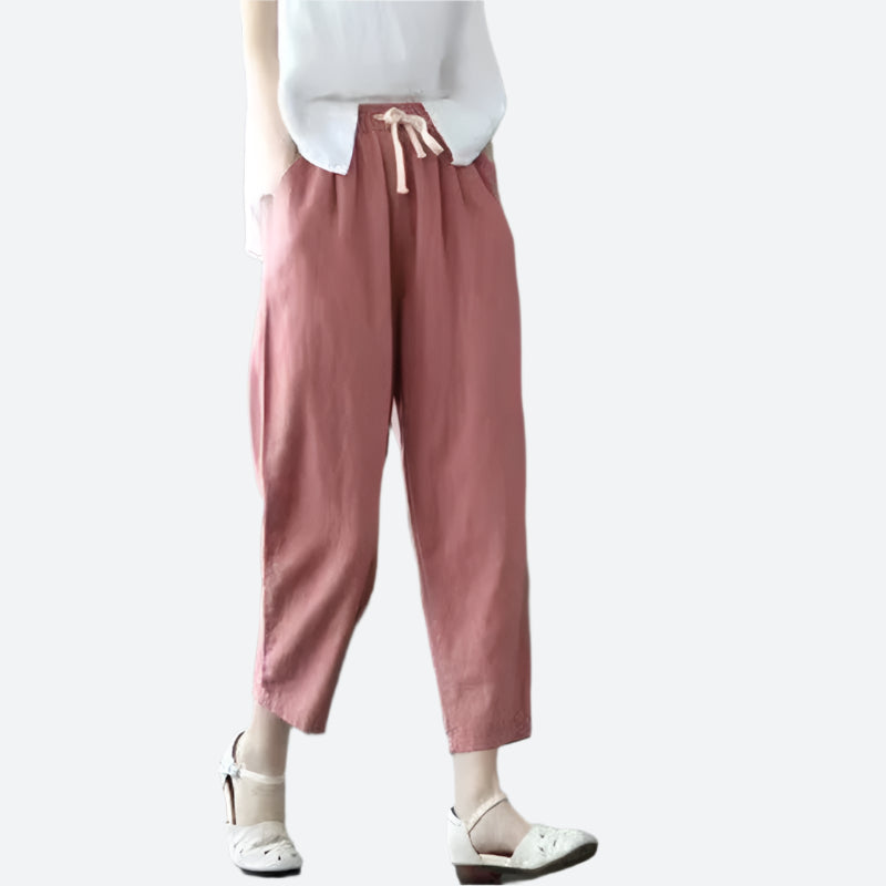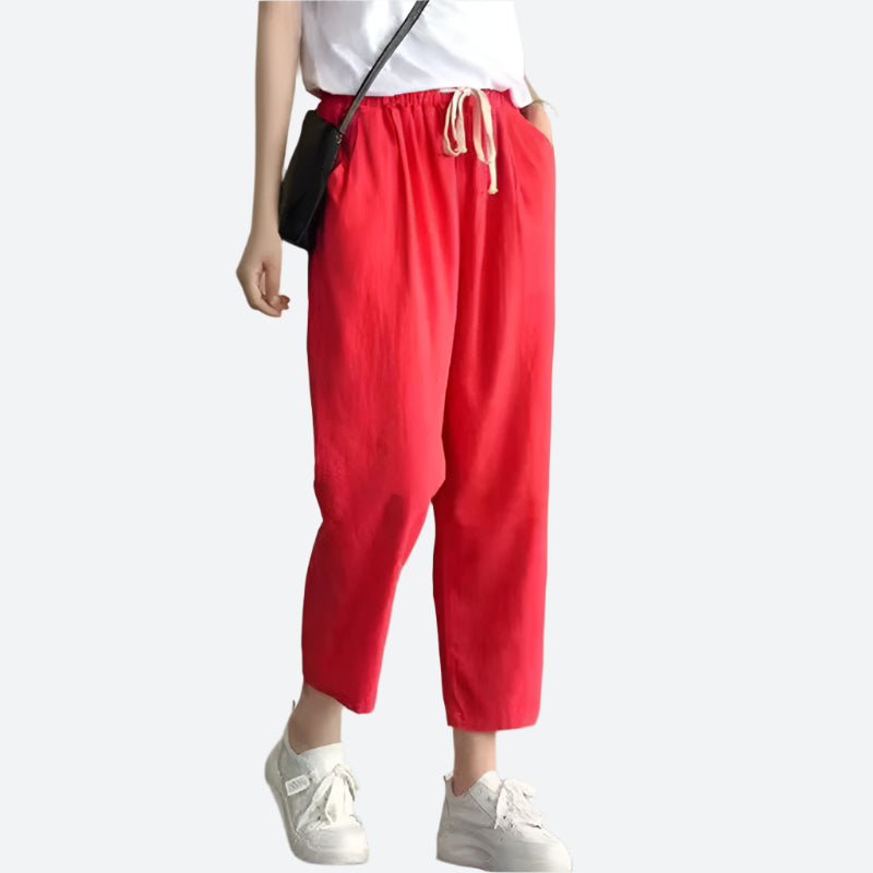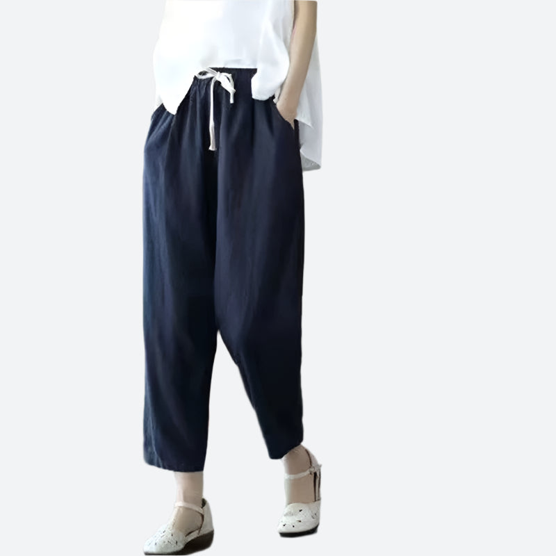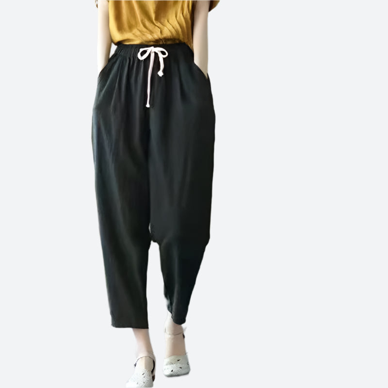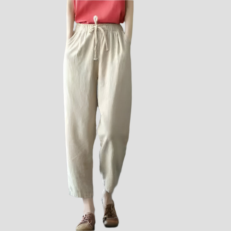 Loose Drawstring Ankle-Length Cotton Pants