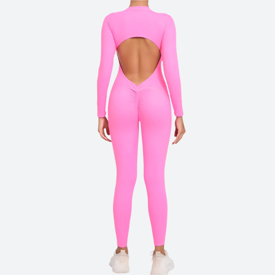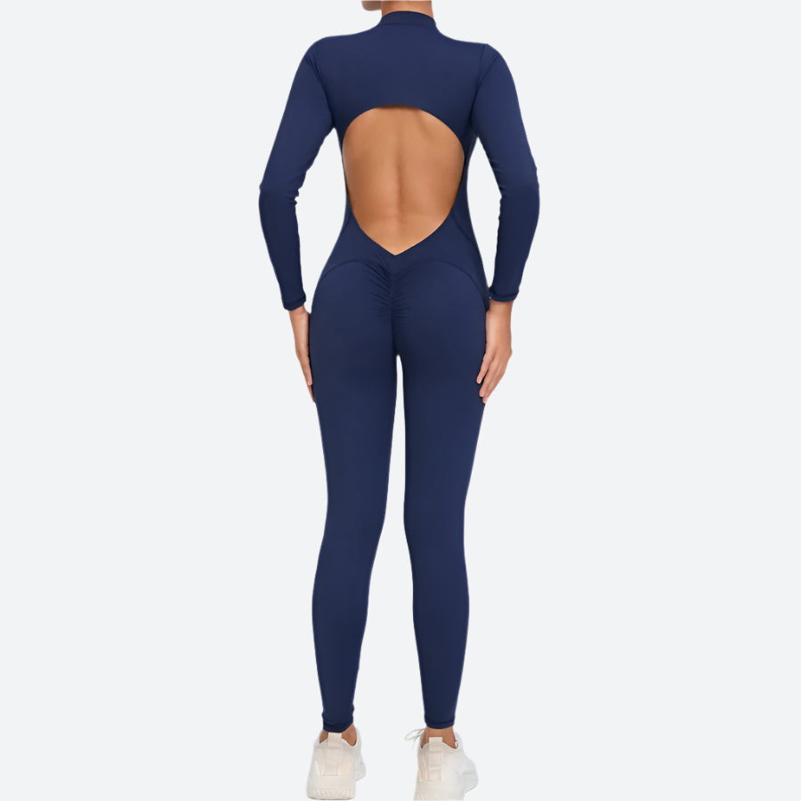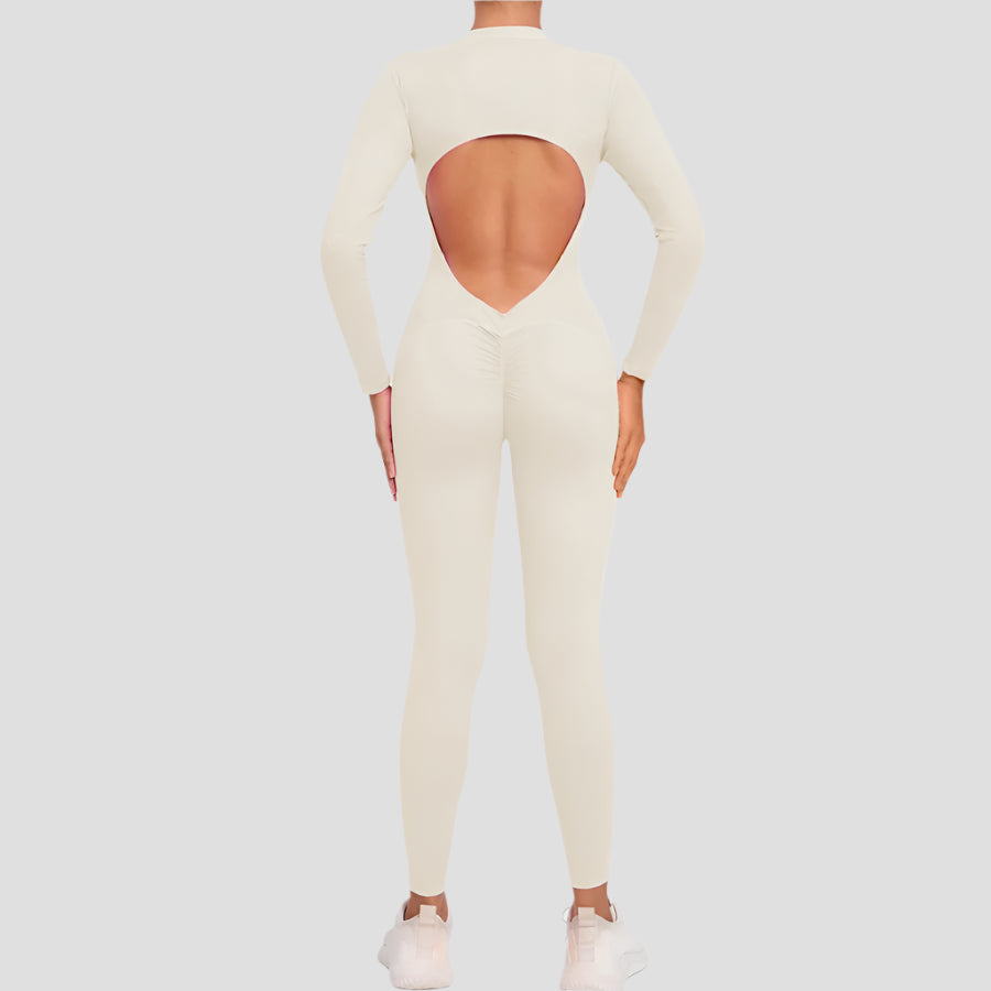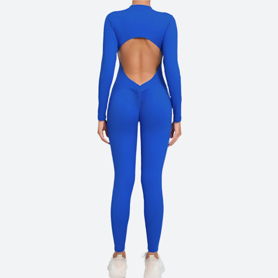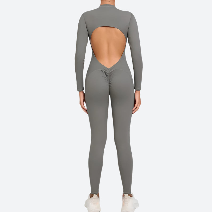 Open-Back Long-Sleeve Fitness Jumpsuits