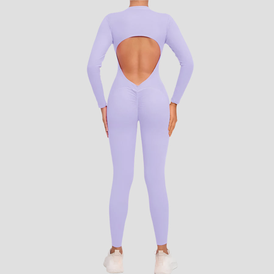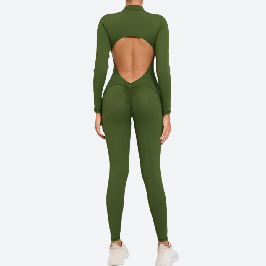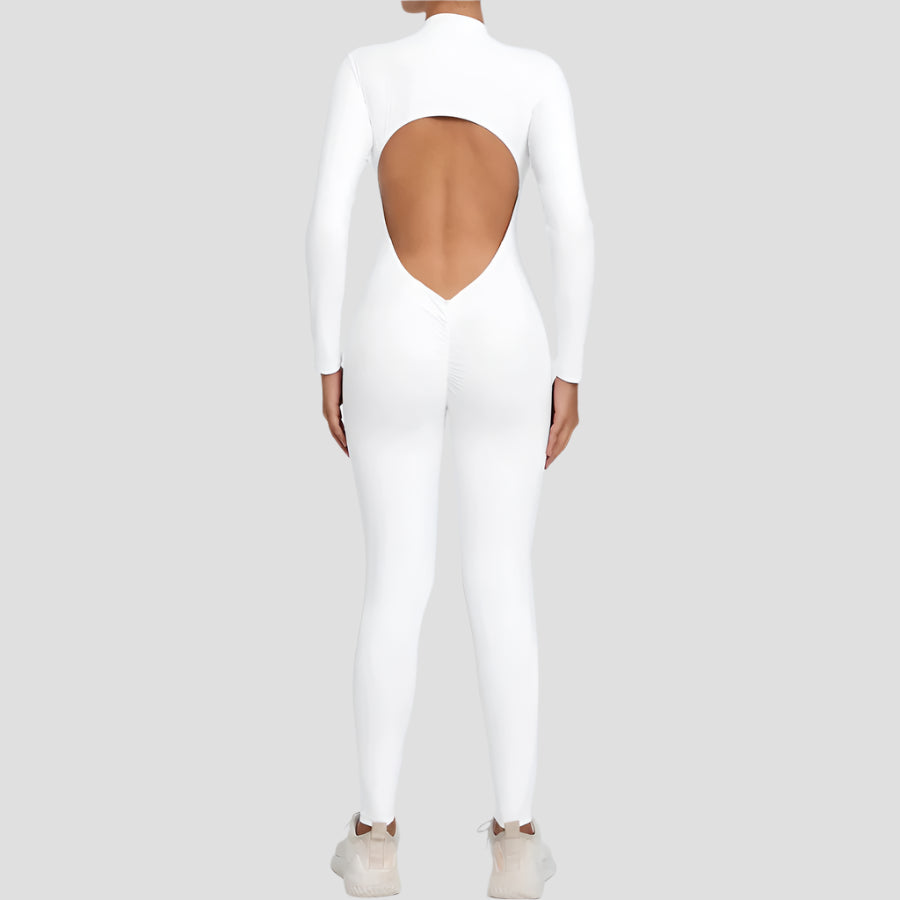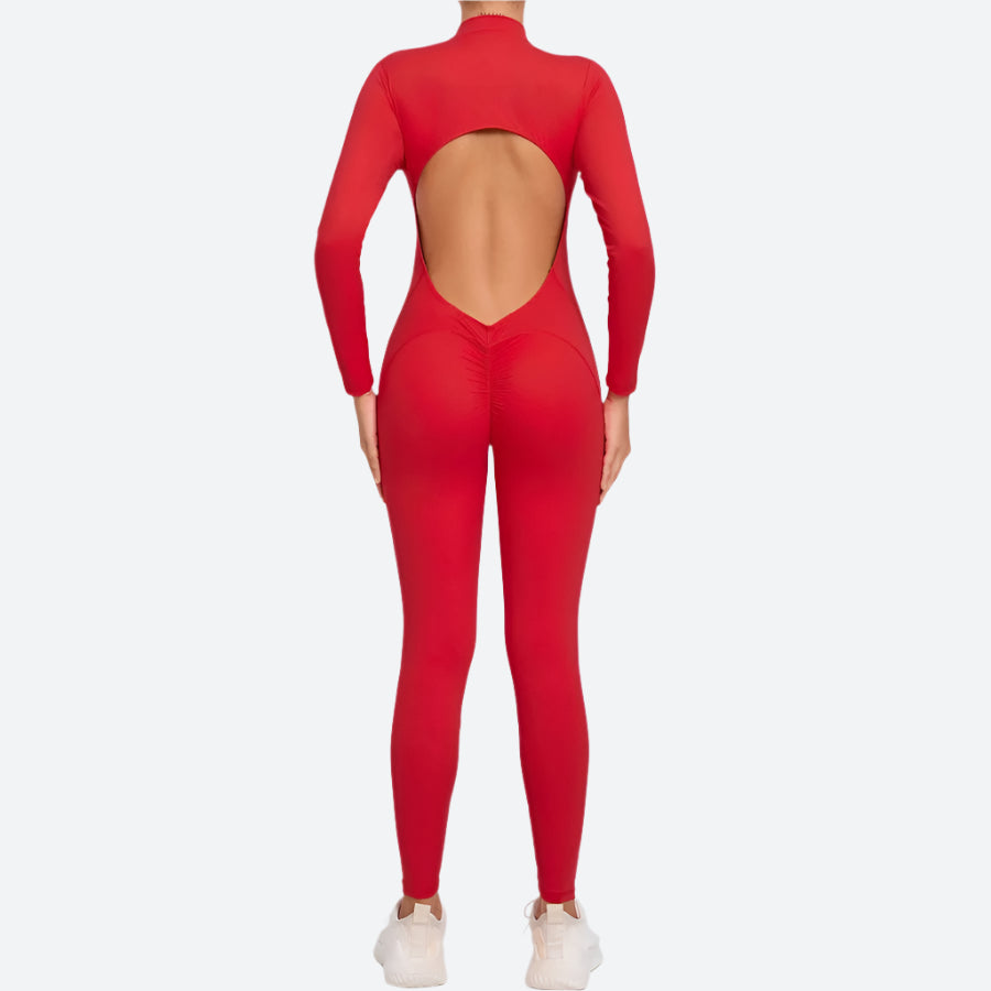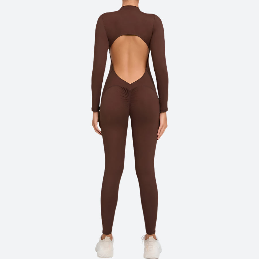 Open-Back Long-Sleeve Fitness Jumpsuits