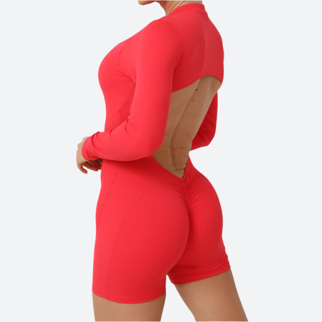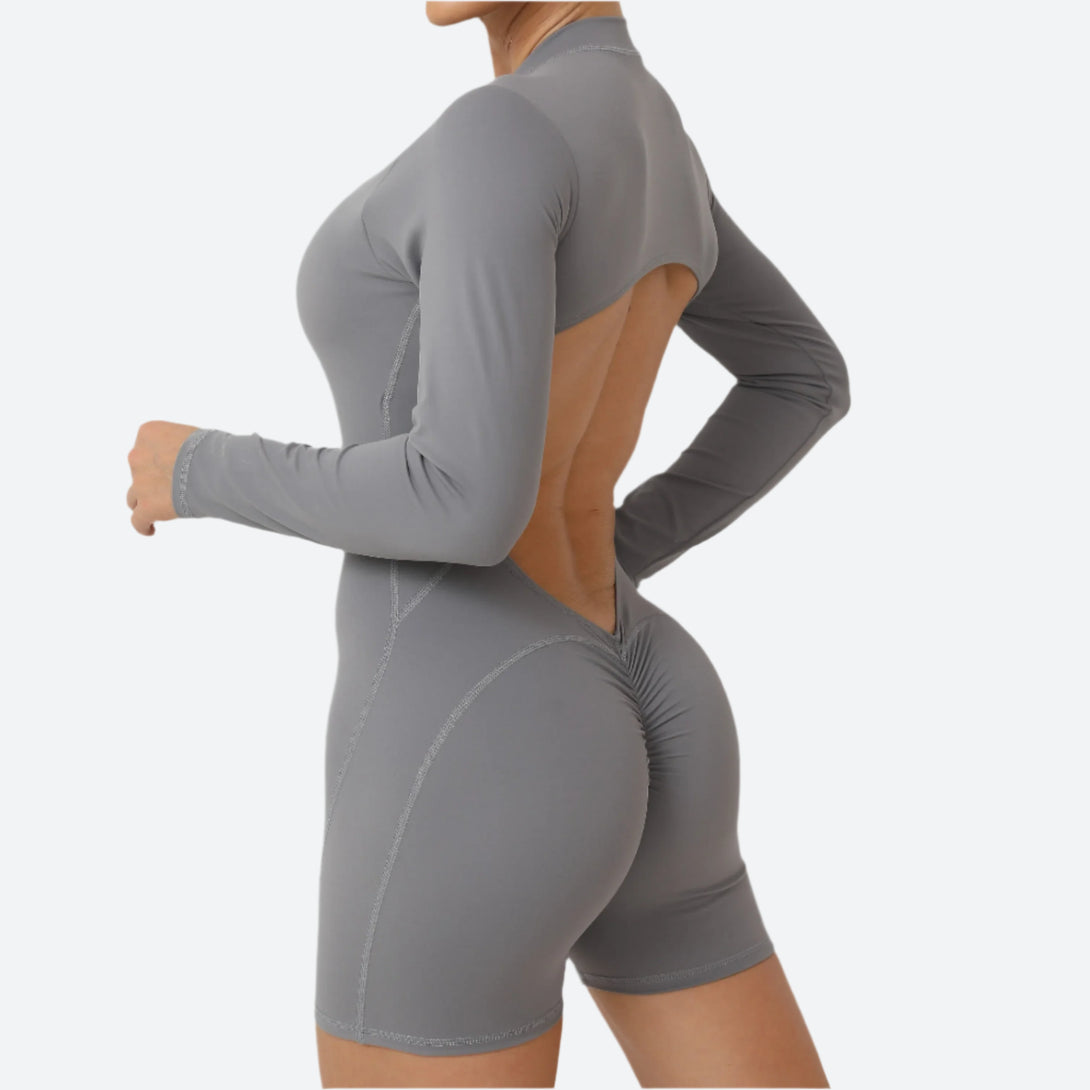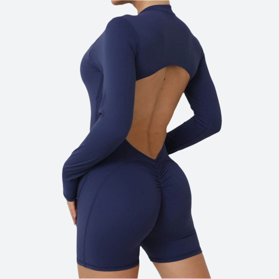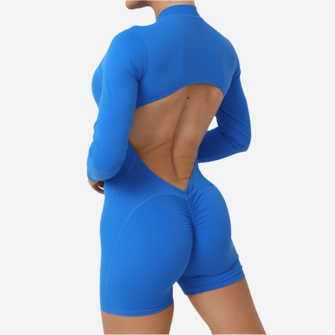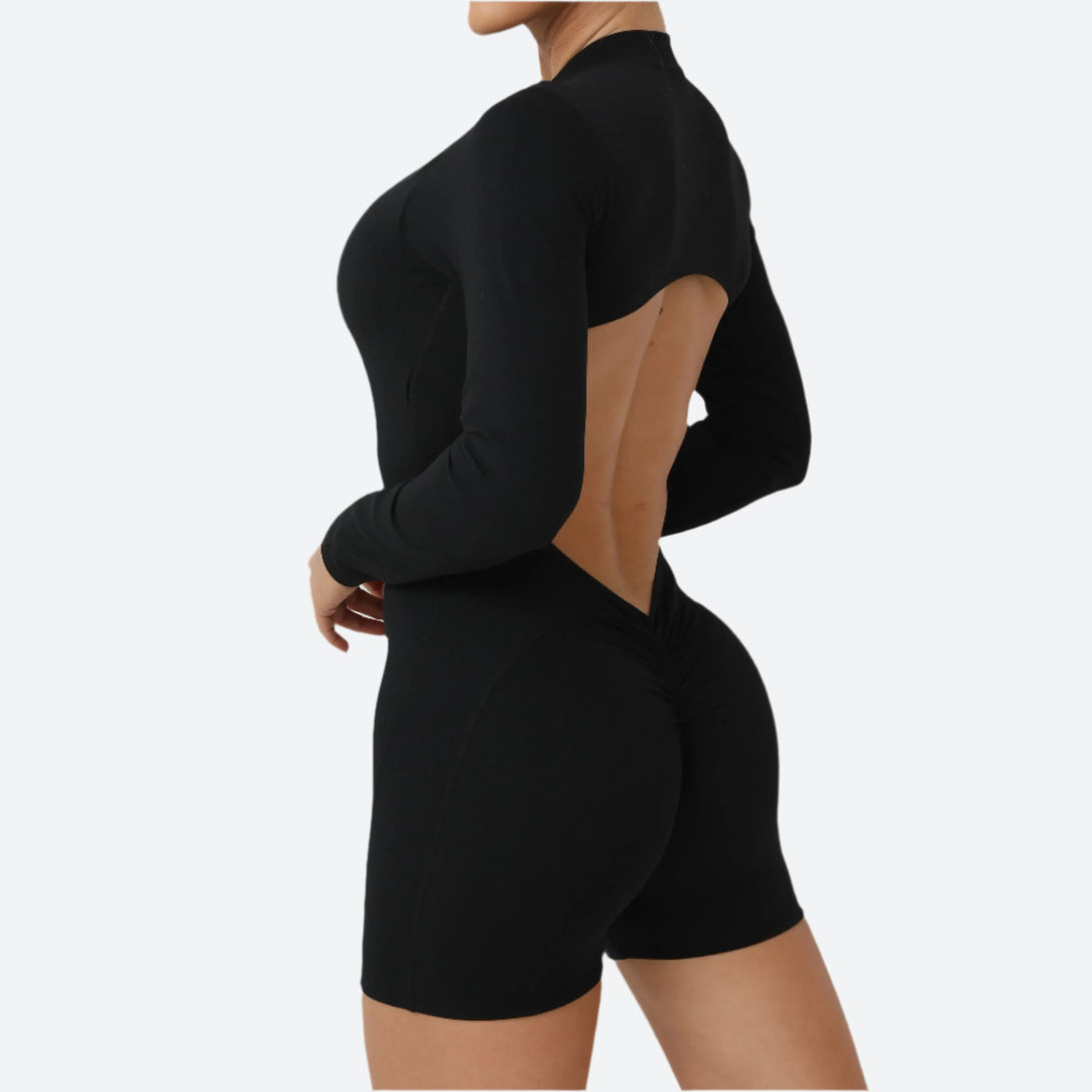 Open-Back Scrunch Long-Sleeve Workout Bodysuits