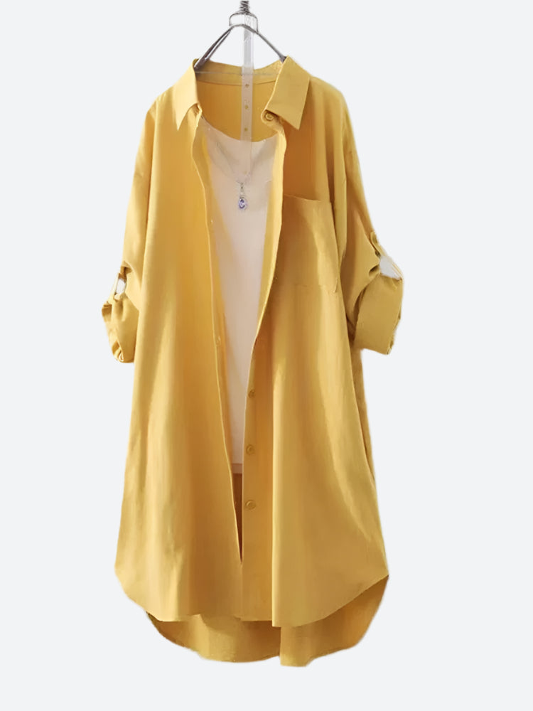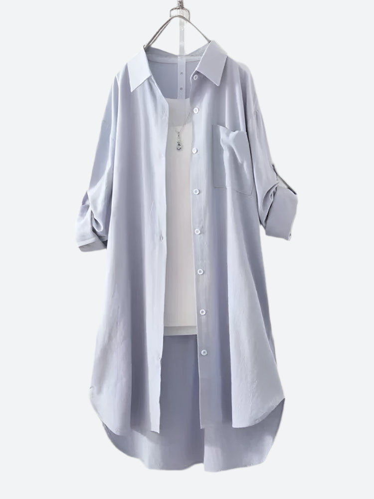 • Design/Feature: Longline Silhouette with Rolled Sleeves