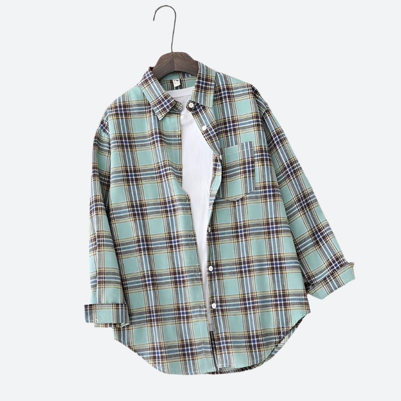 - Design/Feature: Allover Plaid Pattern with Chest Pocket