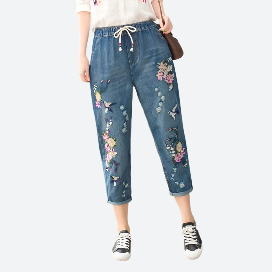Relaxed Fit Embroidered Denim Pants