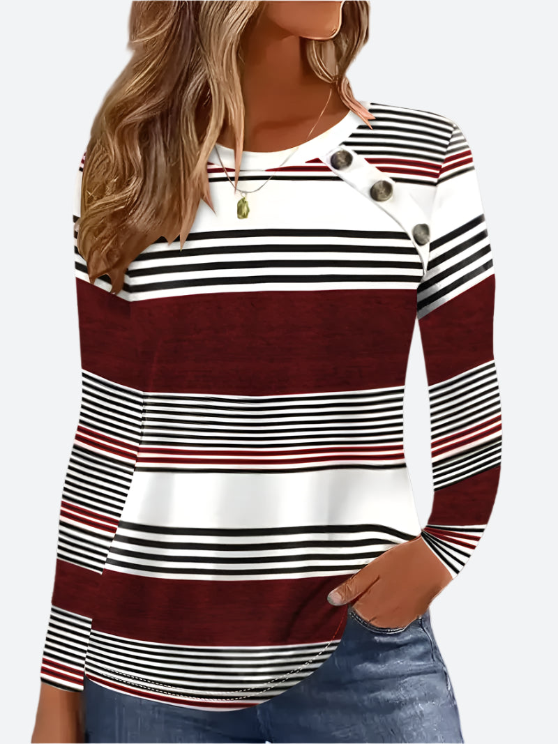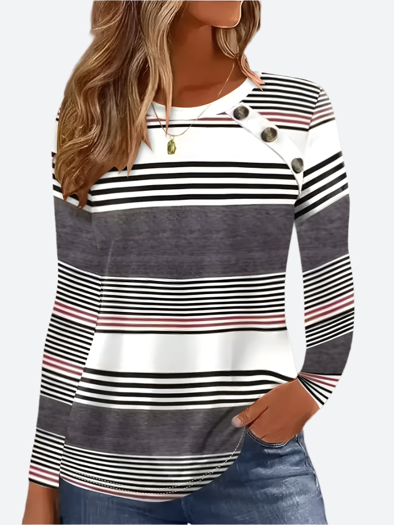 Striped Button-Accent Long-Sleeve T-Shirts