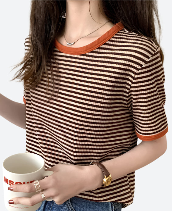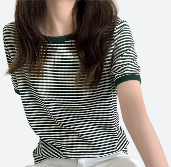 Striped Ribbed Short-Sleeve T-Shirts