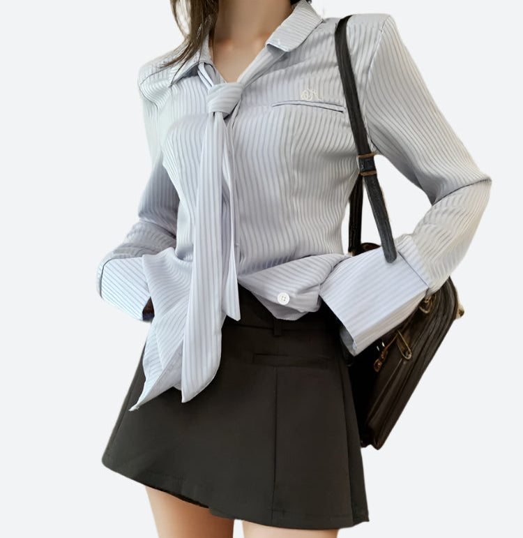 • Design/Feature: Elegant Tie-Neck Detail with Subtle Stripes