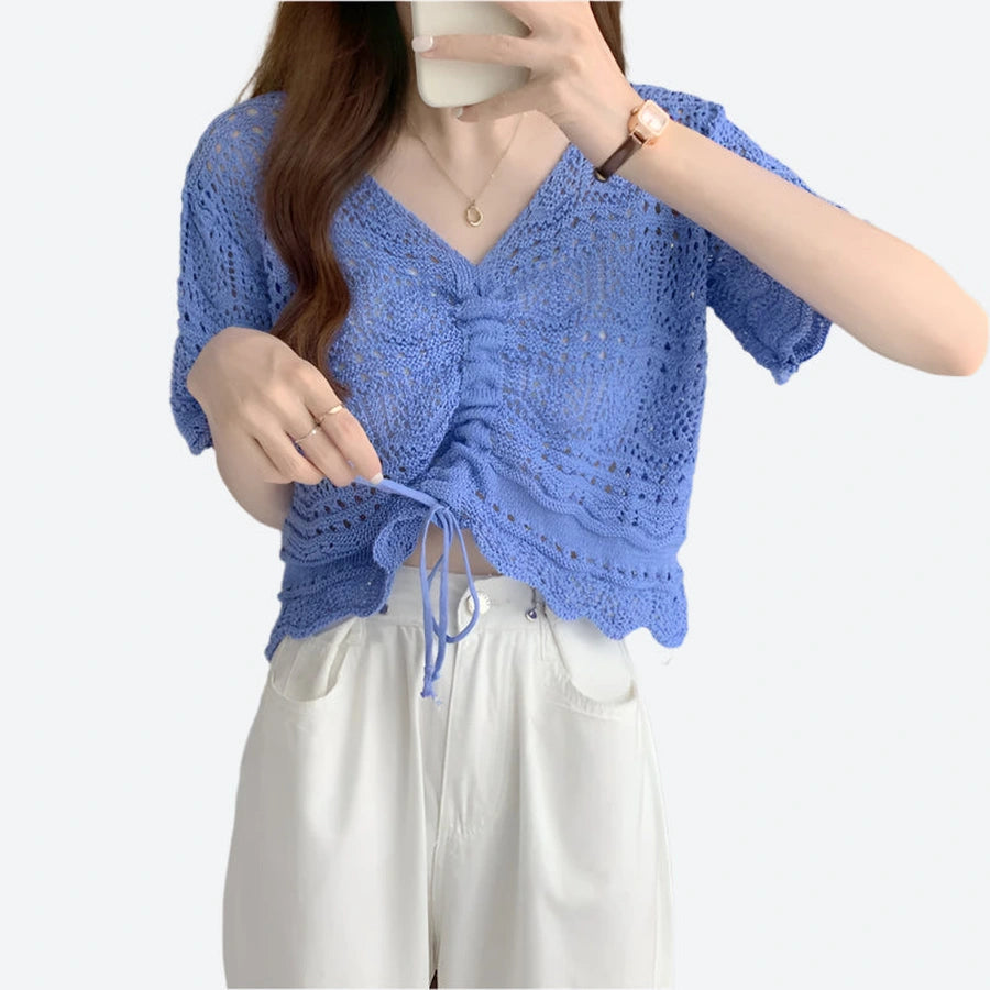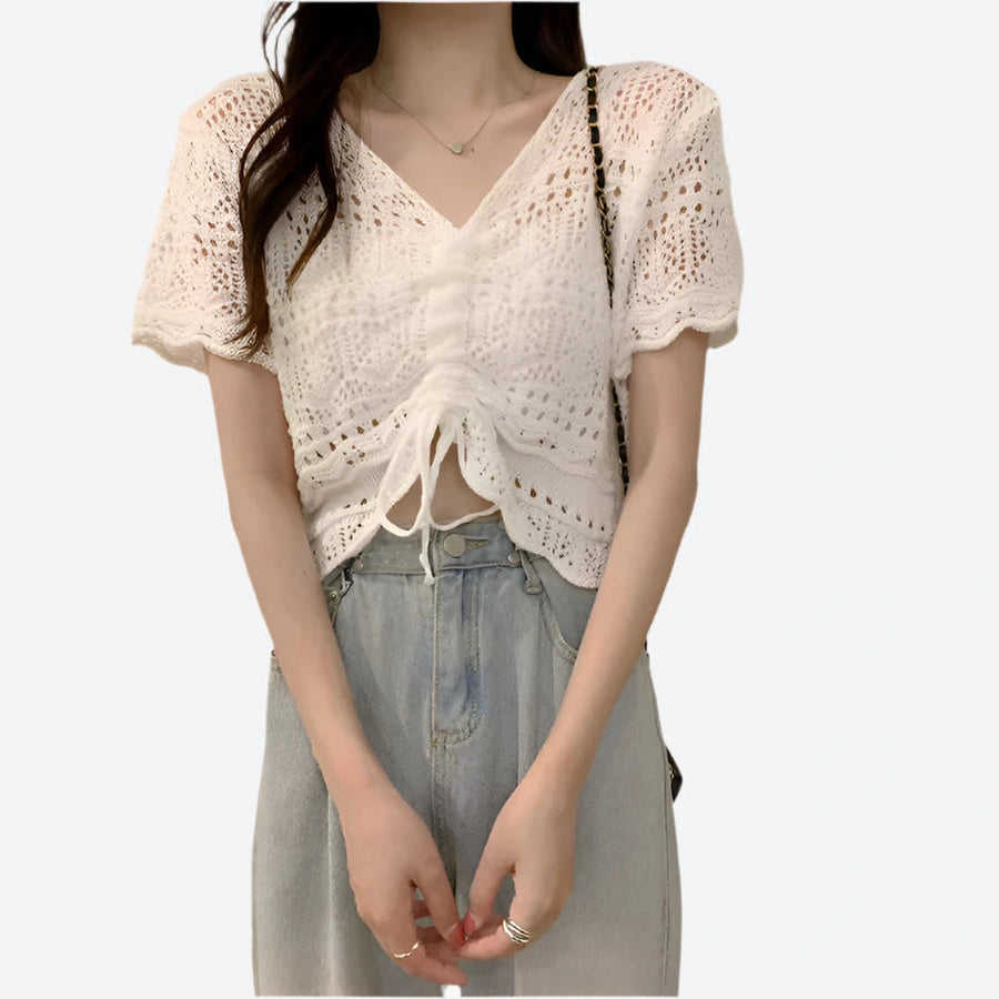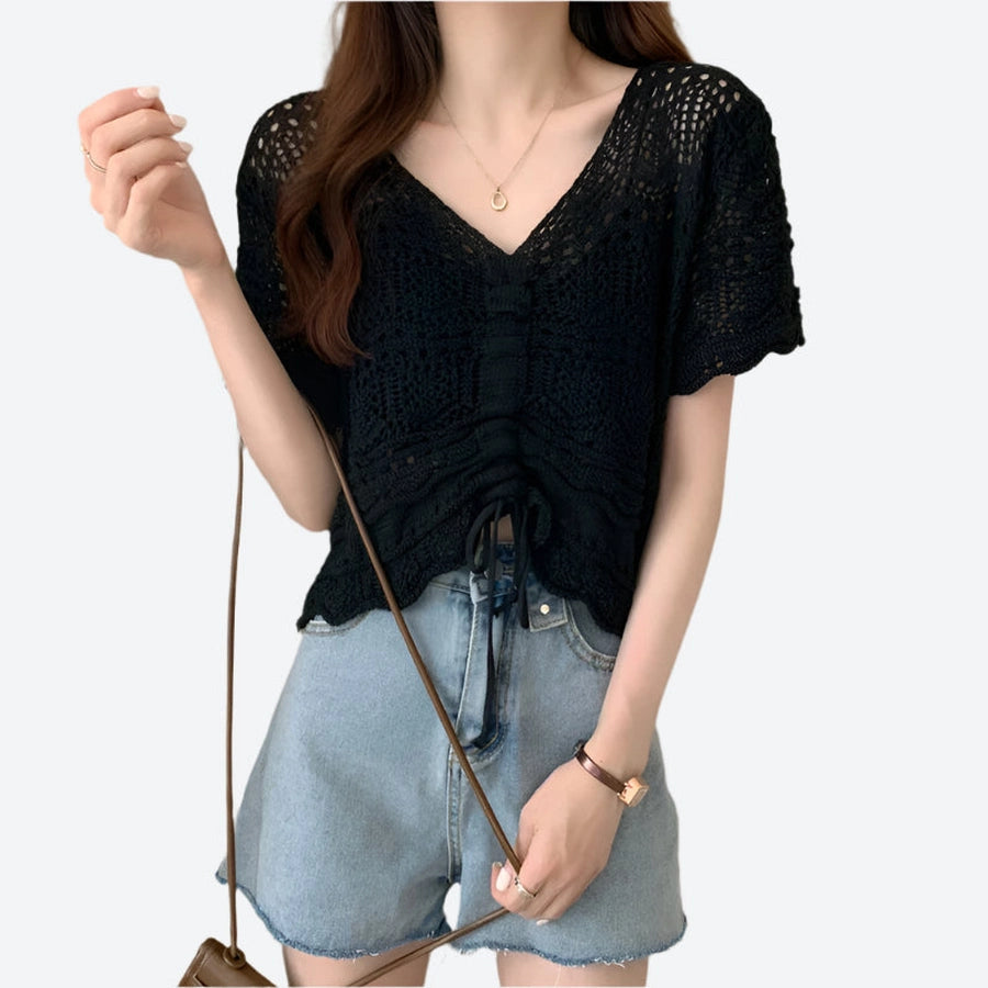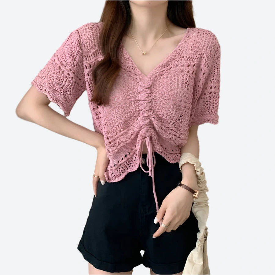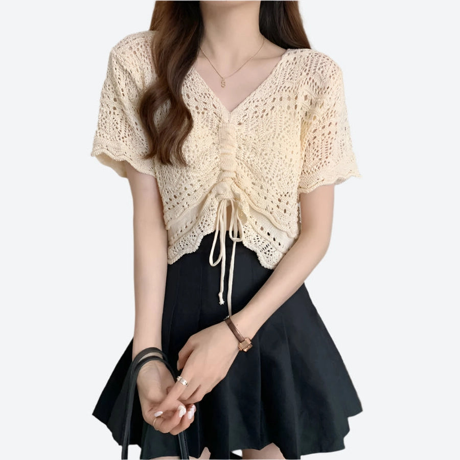 • Design/Feature: Delicate crochet pattern with ruched drawstring front