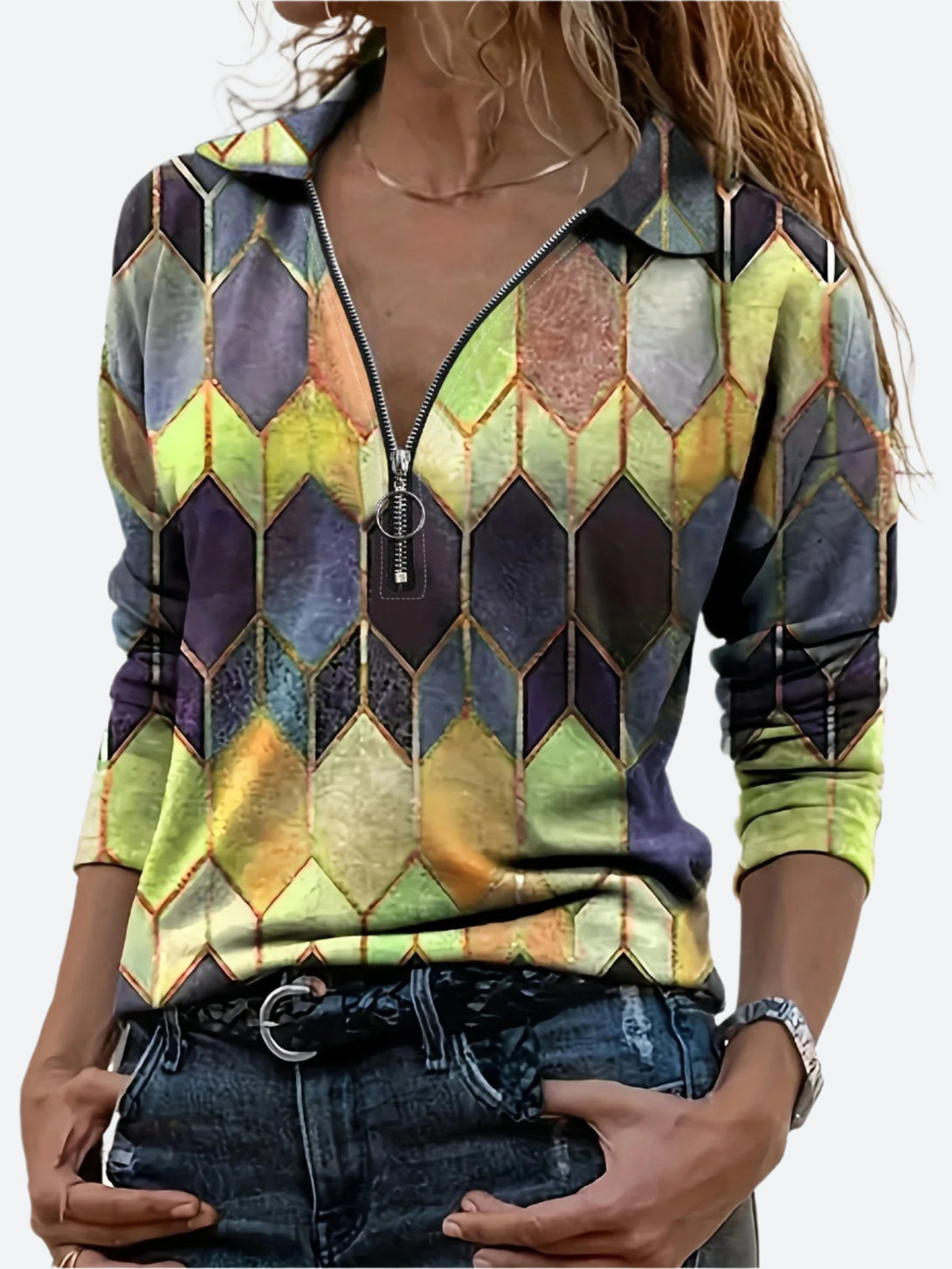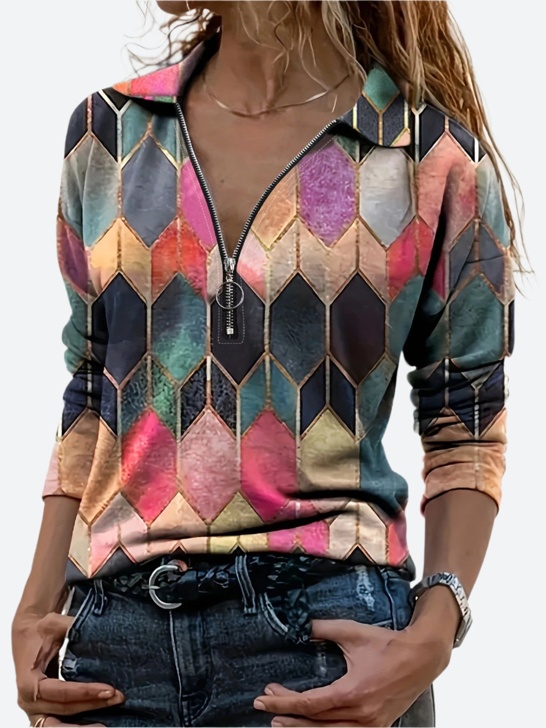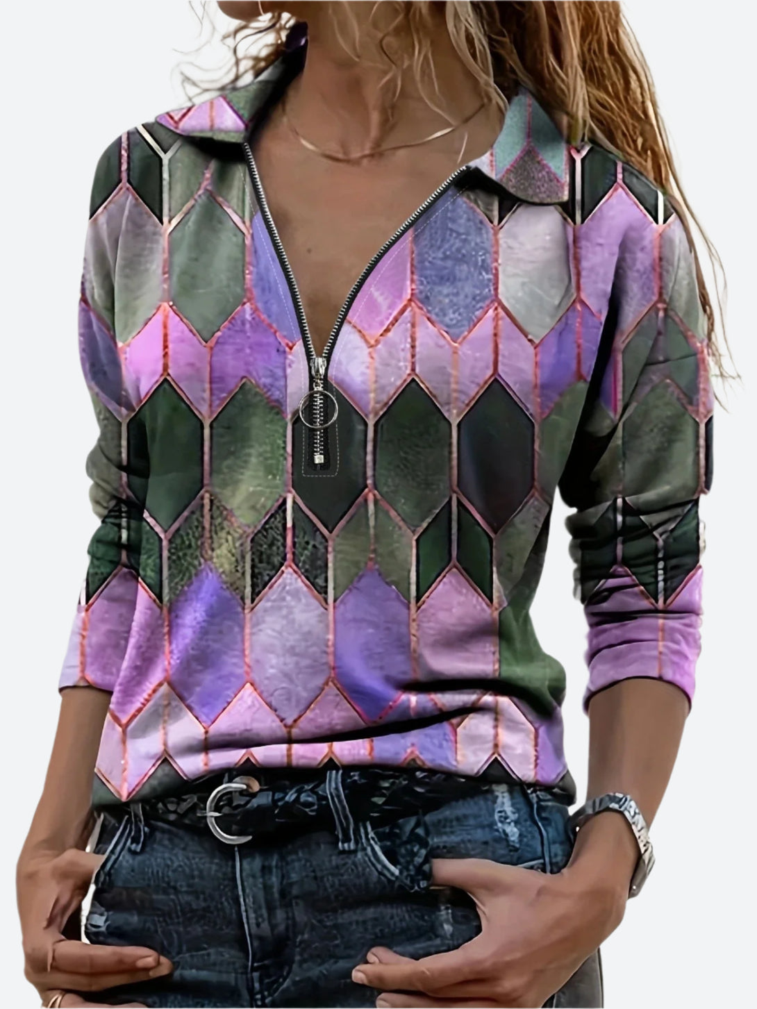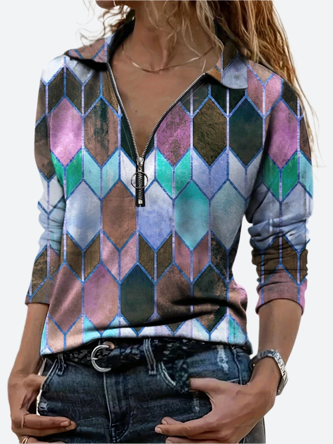 • Design/Feature: Half-Zip Collar with Stylish Print