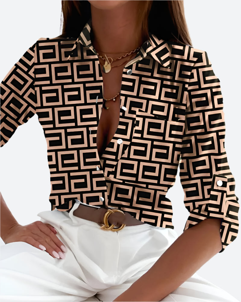 • Design/Feature: Bold Abstract Print with Classic Collar