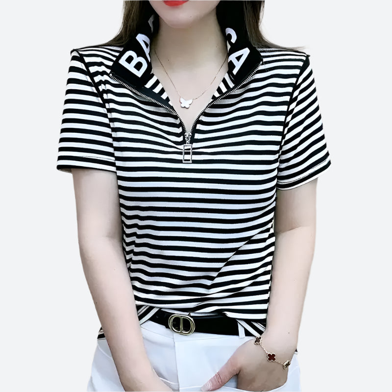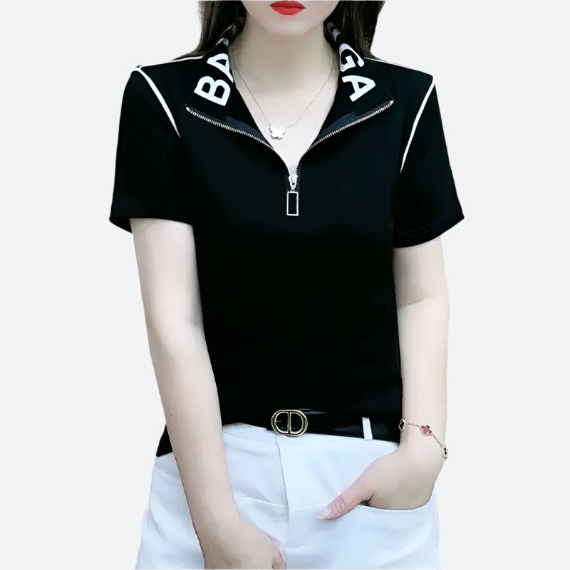 Zip-Collar Short-Sleeve T-Shirts
