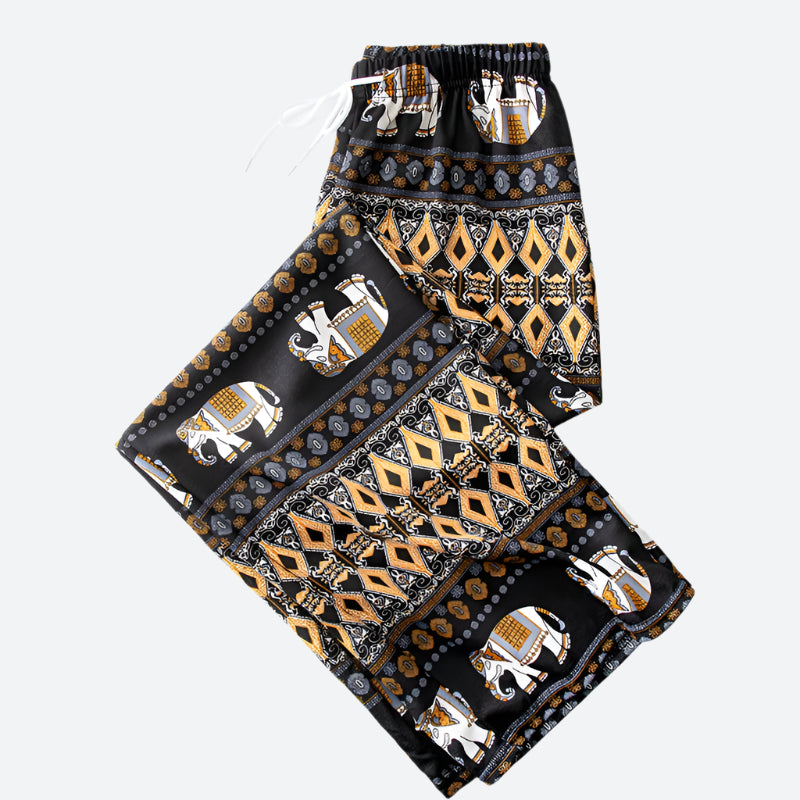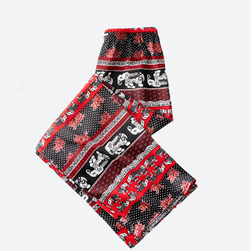Bohemian Elastic-Waist Relaxed Lounge Pants