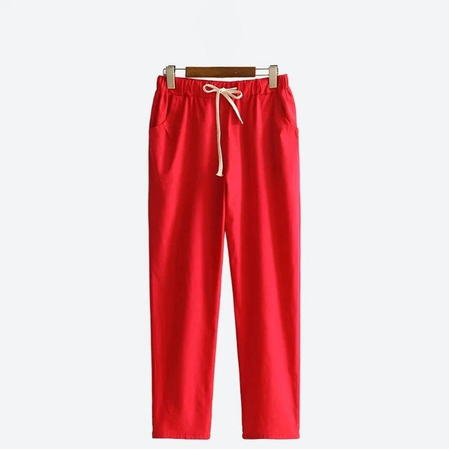 Lightweight Drawstring Straight-Leg Cotton Pants